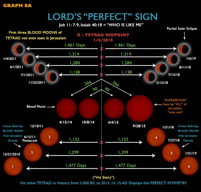 “In the 2014-15 Tetrad, the world will never again see such a magnificent, perfectly synchronized, and orderly alignment of heavenly signs. This Cosmic Countdown, so Divinely fashioned by our Creator, must assuredly tell us that He is literally screaming at us that we are approaching the Edge of (the Church Age) Time … “You will discover that the Biblical Blood Moon Tetrad is astoundingly Unprecedented and Unique.”
